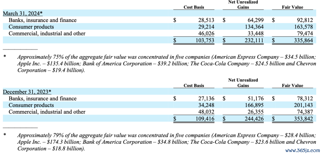 截至一季度末,伯克希尔持有的固定收益证券投资公允价值达171.67亿美元。其中,对美债、外国债券、企业债券的投资公允价值分别为45.03亿美元、109.97亿美元、14.29亿美元。