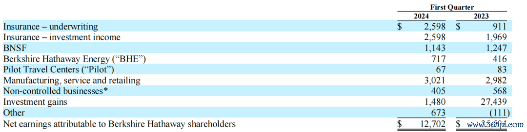 伯克希尔一季报营收净利均超预期